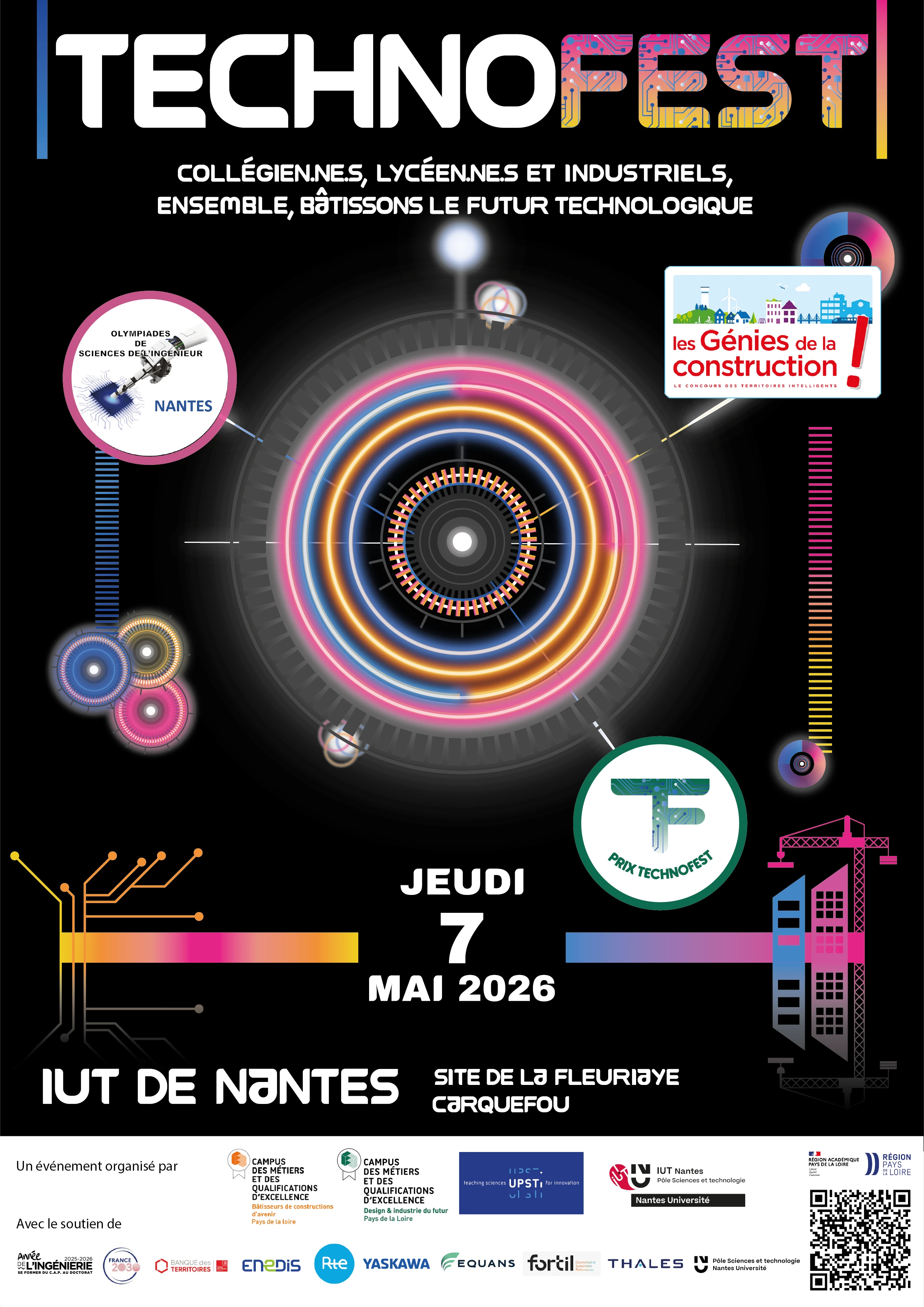 Le 7 mai 2026, l'IUT de Nantes organise TechnoFest, un événement majeur autour de la technologie qui réunira collégiens, lycéens, étudiants et industriels sur le campus de Carquefou.